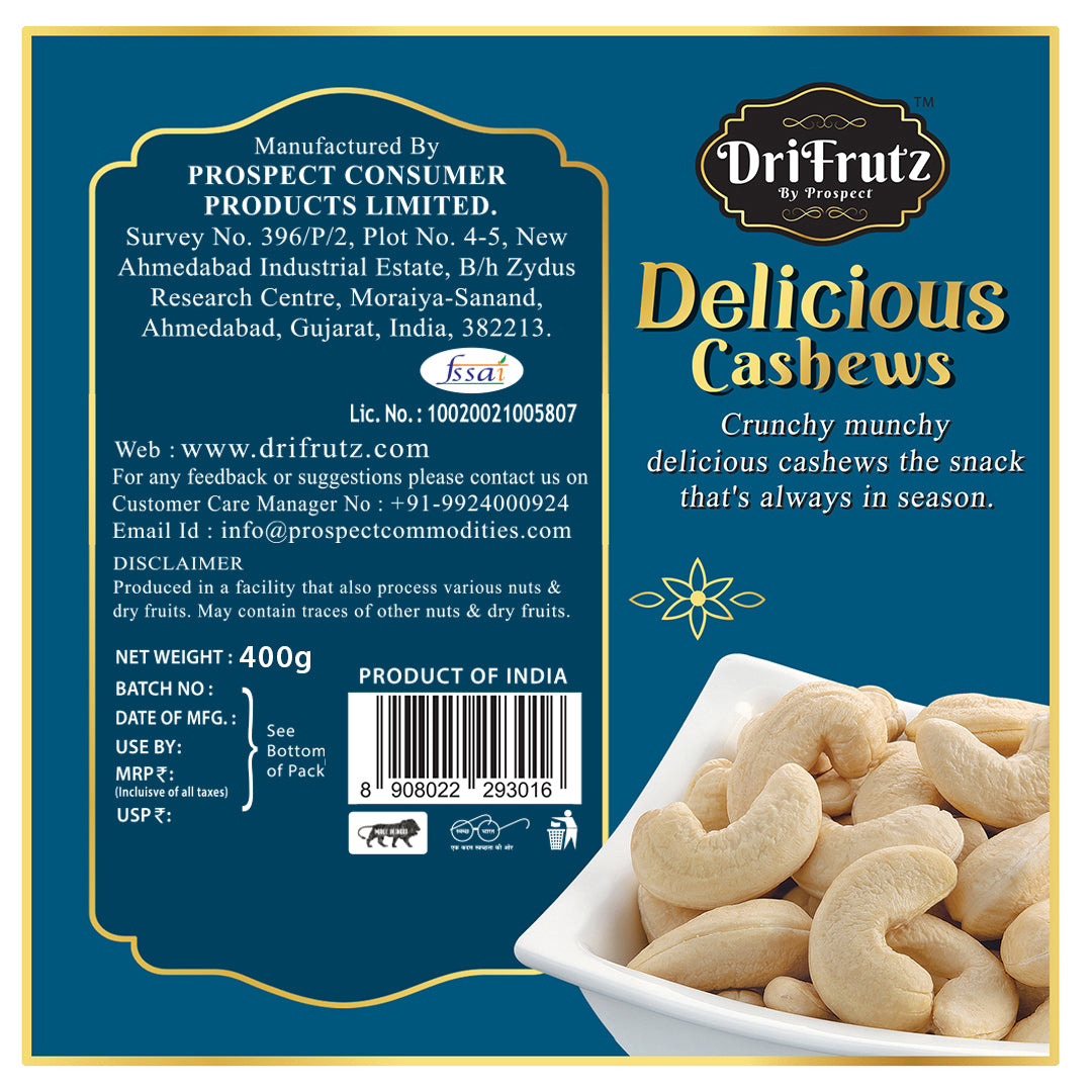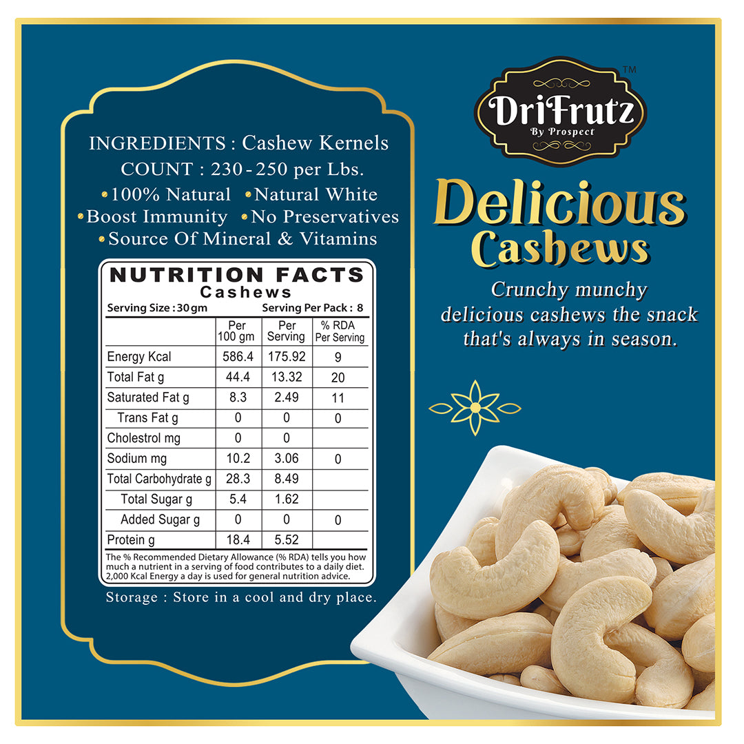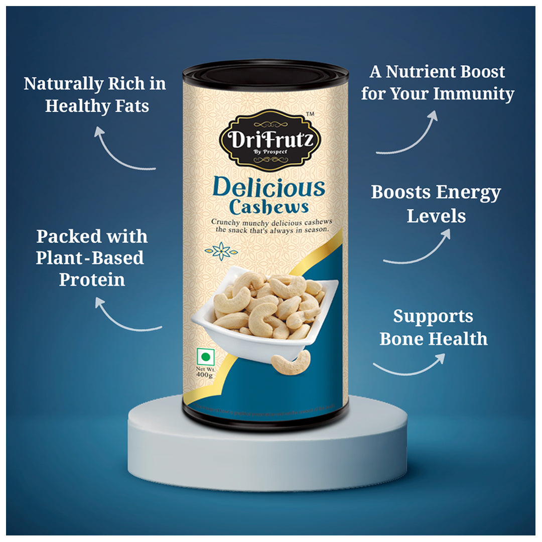 Introducing DriFrutz Delicious Cashews the ultimate jumbo, crunchy delight! Bring excitement to your snacking routine with DriFrutz Delicious Cashews - the jumbo, crunchy cashews that will leave you wanting more. Order now and experience the pure joy of this irresistible treat! Indulge in the premium quality of DriFrutz Delicious Cashews and experience the joy of biting into a perfectly crunchy nut.