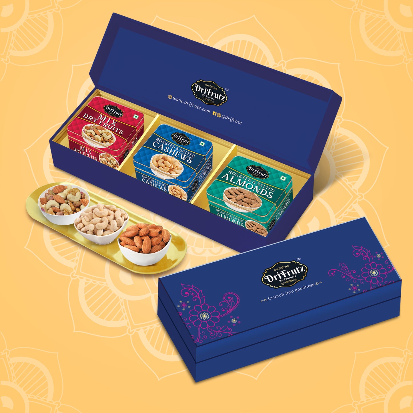 Packed in a beautifully crafted, reusable tin box, the DriFrutz Combo of 3 is the ideal gift for any occasion. Whether it’s a festive celebration, a corporate gift, or a thoughtful gesture for a loved one, this hamper delivers a delicious and nutritious snacking experience.